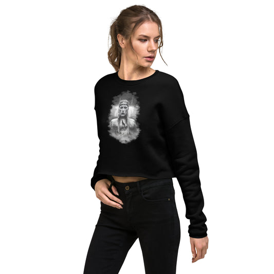 Wolf Rose Recyceltes Langarm Crop Top mit Allover-Druck