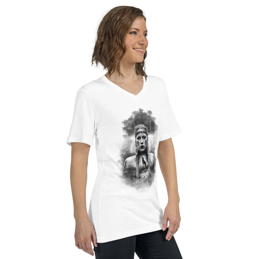Wikinger Frau Kurzärmeliges Unisex-T-Shirt mit V-Ausschnitt